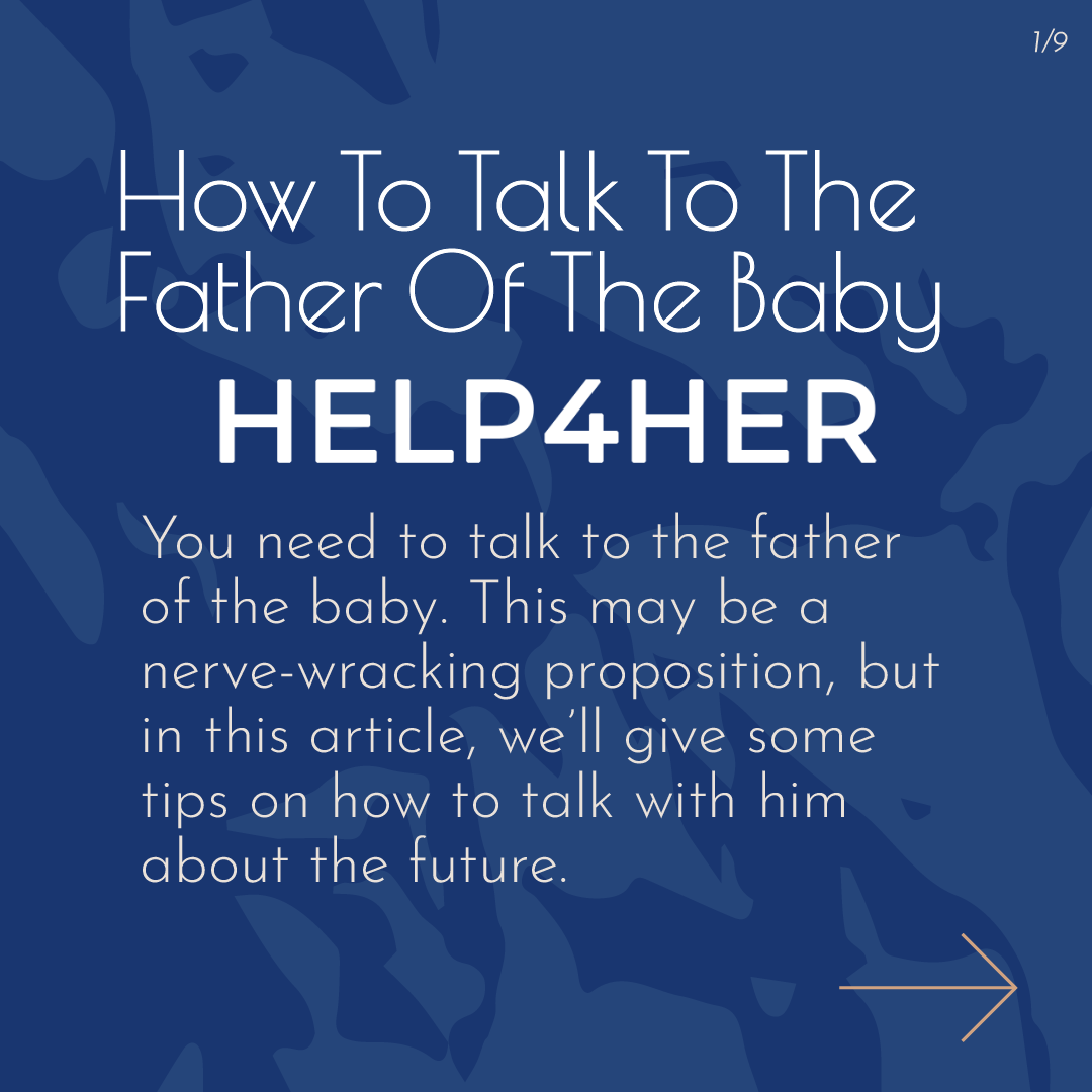 Both of you can benefit from a listening ear. Plus, you can learn about relationships, childbirth, and parenting through courses. And that’s not all the resources that are available to you at your local center. You both may need help with finding employment or continuing education so that you can help provide for your baby. Help4Her can guide you. Being prepared and proactive will help ensure a good relationship with the father and a healthy pregnancy for you and the baby.