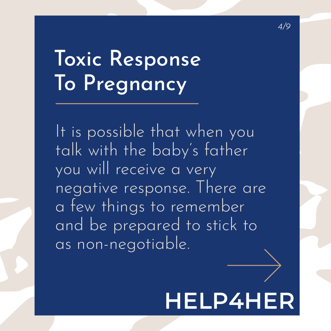 It is possible that when you talk with the baby’s father you will receive a very negative response. In fact, that response may be downright toxic. In order to prepare for this there are a few things to remember and be prepared to stick to as non-negotiable.