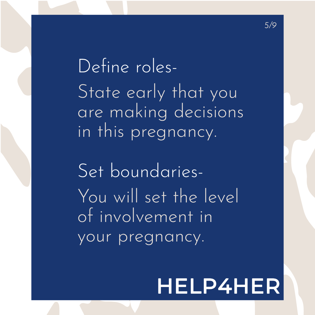 Define roles - state early that you are making decisions in this pregnancy. While he is welcome to be a positive participant in the pregnancy, the final say will lay with you and your parents.