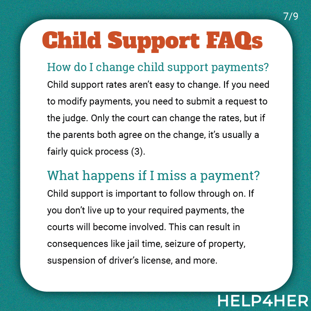 If you’re having a hard time making your child support payments, there are groups like the United Way that can get you in touch with pro bono legal support. These organizations can help you get the paperwork you need and may be able to offer you legal support as well (4). Contact your local Pregnancy Resource Center to get in touch with some of these resources. Other considerations to make are to examine your lifestyle, make a budget, and reduce your expenses. Your local PRC can offer you help with budgeting as well.